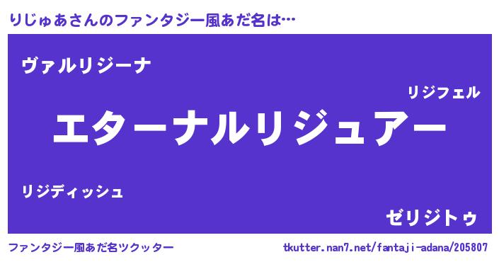| 意味不明あだ名 | 『りじゅあフォーエバー』『自称りじゅあ』 |