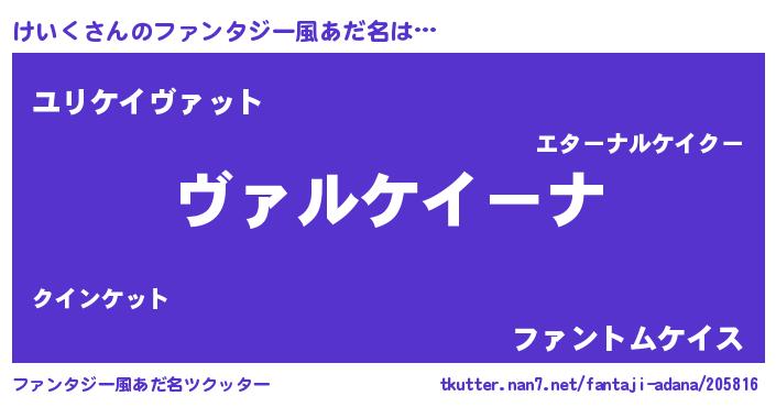 | 男性向けラノベタイトル風あだ名 | 『この素晴らしい世界にけいくを!』 |