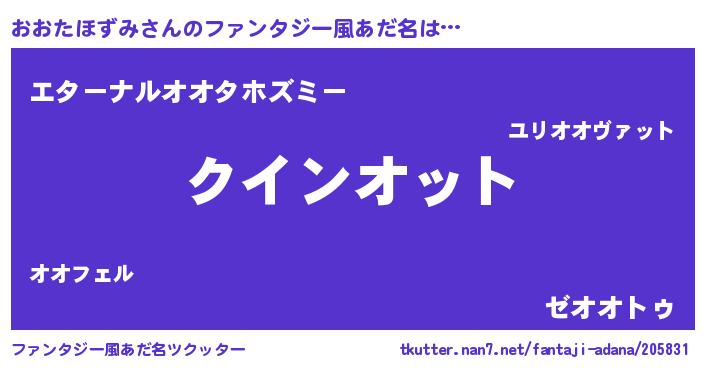 | 男性向けラノベタイトル風あだ名 | 『おまえをオタクにしてやるから、俺をおおたほずみにしてくれ! 』 |
