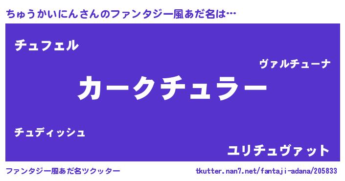 | 2回繰り返すあだ名 | 『ちゅるちゅる』『ちゅちゅ』 |