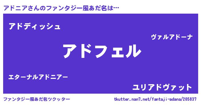 | 男性向けラノベタイトル風あだ名 | 『アドニアの憂鬱』『アドニアスレイヤー』 |