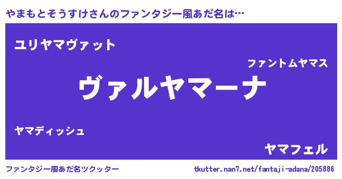 | 男性向けラノベタイトル風あだ名 | 『魔弾の王とやまもとそうすけ』 |