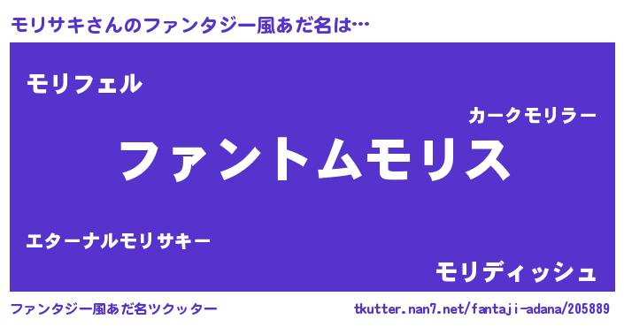 | 自動車の名前っぽいあだ名 | 『モルトリパン』『モリティマ』 |