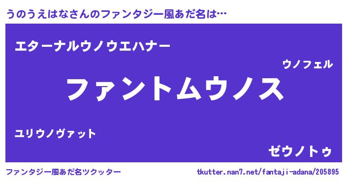 | 男性向けラノベタイトル風あだ名 | 『うのうえはなの嫁は女の子じゃないと思った?』 |