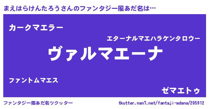 | 意味不明あだ名 | 『住所不定無職まえはらけんたろう(9歳)』 |