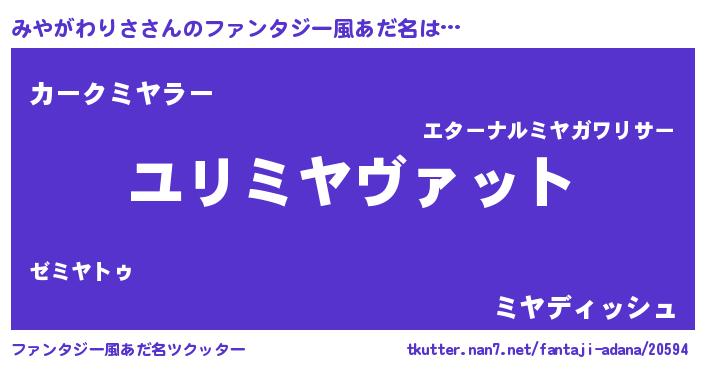 | 男性向けラノベタイトル風あだ名 | 『転生したらみやがわりさだった件』 |