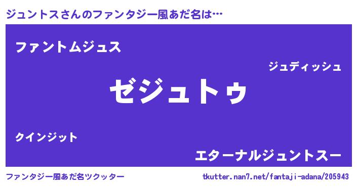 | ヒーロー風カッコイイあだ名 | 『最強戦士ジュントス』『幻影騎士ジュ』 |
