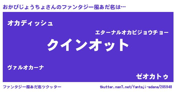| 女子向けラノベタイトル風あだ名 | 『おかぴじょうちょ恋絵巻』 |