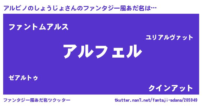 | ヒーロー風カッコイイあだ名 | 『スーパーアルビノノショウジョ』 |
