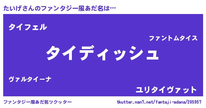 | ヘコむあだ名 | 『たいげ(震え声)』『たいもー』 |