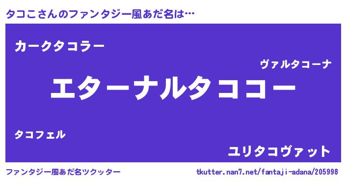 | 意味不明あだ名 | 『タコこフォーエバー』『ペロリンタコこ』 |
