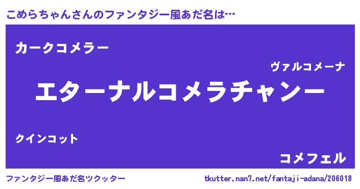| ポケモン風あだ名 | 『コメラダネ』『メロコッメ』 |
