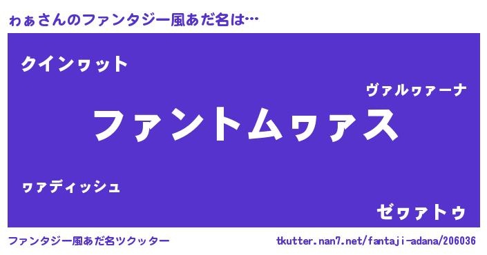 | 自動車の名前っぽいあだ名 | 『ヮルトァパン』『フィッヮ』 |