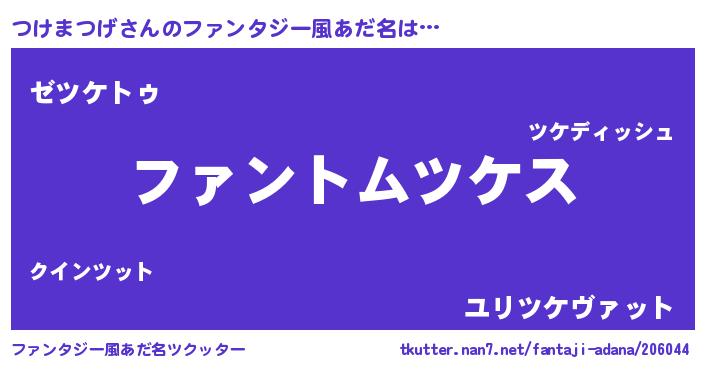 | ポケモン風あだ名 | 『ヒツケマツゲ』『ツケセウス』 |