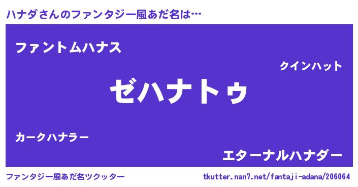 | 男性向けラノベタイトル風あだ名 | 『魔法科高校のハナダ』 |