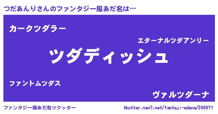 | 胡散臭い通販商品みたいなあだ名 | 『来世でも幸せになれる水素水…その名も「つだあんり」』 |
