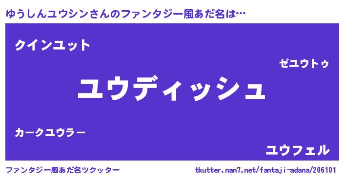 | ヒーロー風カッコイイあだ名 | 『ネオユウシンユウシン』『仮面ユウダー』 |