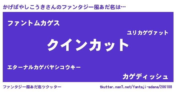 | 胡散臭い通販商品みたいなあだ名 | 『お金では代えられない隕石のかけら…その名も「かげばやしこうき」』 |