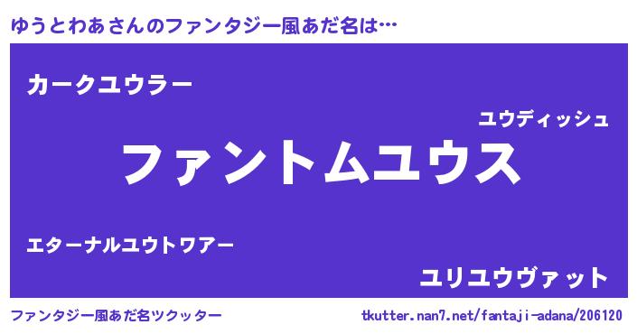 | ヒーロー風カッコイイあだ名 | 『幻影騎士ユウ』『ネオユウトワア』 |