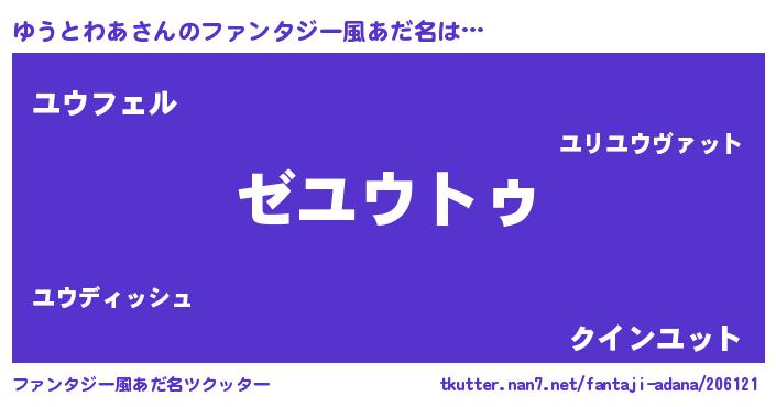 | 男性向けラノベタイトル風あだ名 | 『Re:ゆうとわあから始める異世界生活』 |