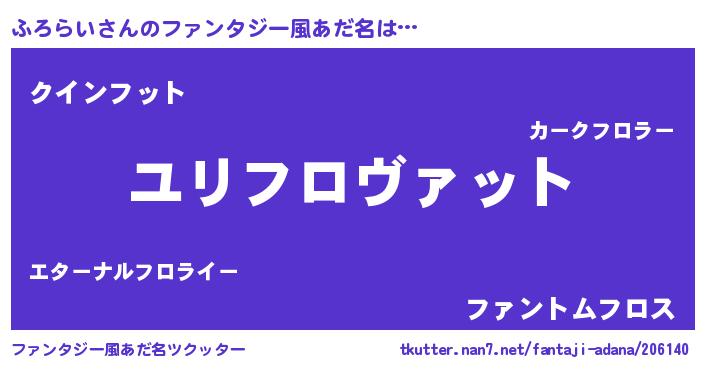 | 男性向けラノベタイトル風あだ名 | 『転生したらふろらいだった件』 |