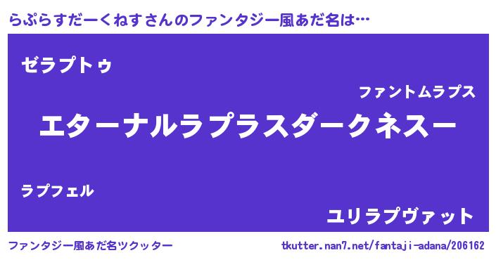 | 意味不明あだ名 | 『らぷらすだーくねすフォーエバー』 |