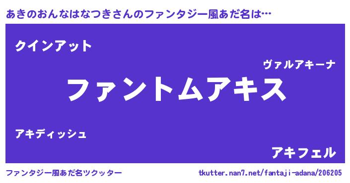 | 女子向けラノベタイトル風あだ名 | 『あきのおんなはなつきは平凡を望む』 |