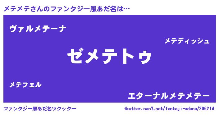 | ヒーロー風カッコイイあだ名 | 『ウルトラ戦士メテメテ』『仮面メテダー』 |