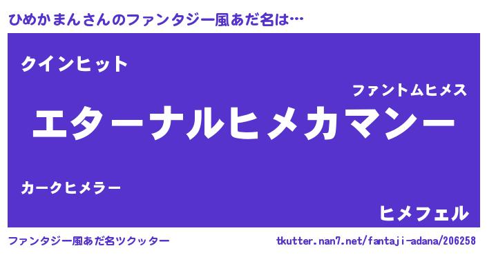 | 意味不明あだ名 | 『ひめかまんフォーエバー』 |