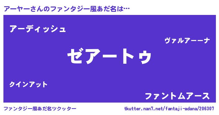 | 意味不明あだ名 | 『自称アーヤー』『永久保存アーヤー』 |
