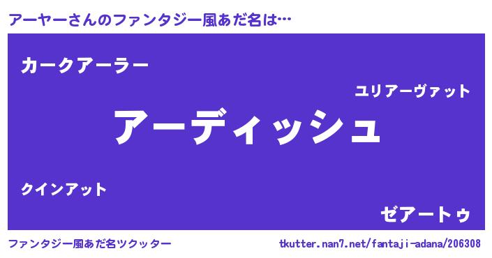 | 意味不明あだ名 | 『永久保存アーヤー』『自称アーヤー』 |