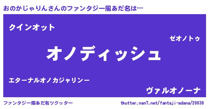 | 男性向けラノベタイトル風あだ名 | 『おのかじゃりんに滅ぼされるだけの簡単なお仕事です』 |