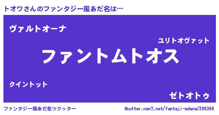 意味不明あだ名 | 『とにかく怪しいトオワ』『自称トオワ』 |