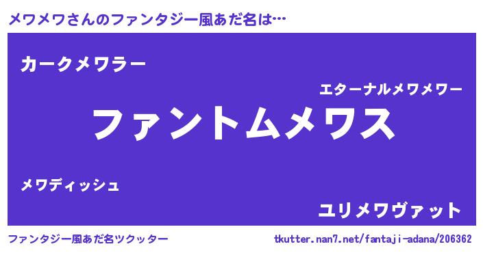 ヒーロー風カッコイイあだ名 | 『天弓騎士メワ』『ウルトラメワメワマン』 |