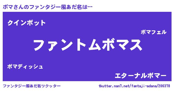 ヒーロー風カッコイイあだ名 | 『幻影騎士ボマ』『正義の使者ボマ』 |
