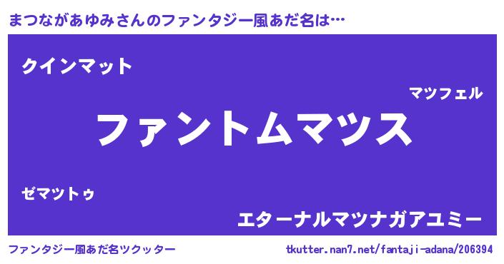 男性向けラノベタイトル風あだ名 | 『ダンジョンにまつながあゆみを求めるのは間違っているだろうか』 |