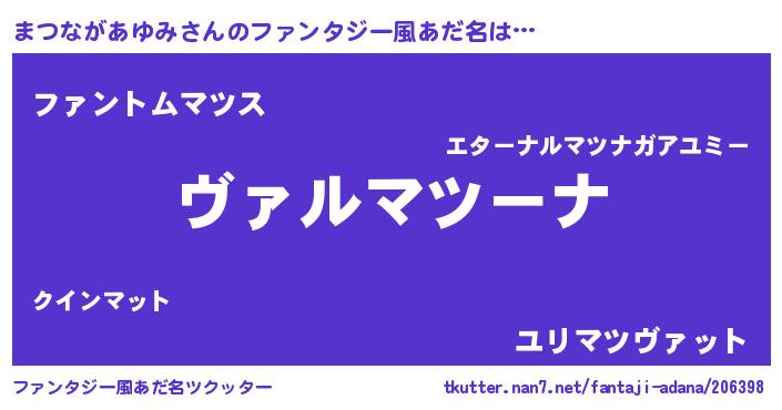 ポケモン風あだ名 | 『マーツイ』『ヒマツナガアユミ』 |