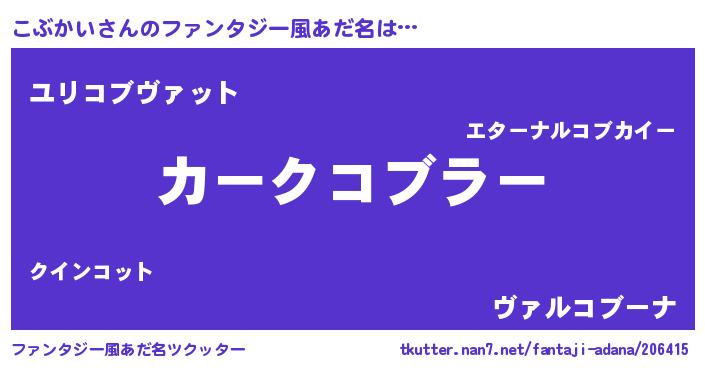 | 男性向けラノベタイトル風あだ名 | 『こぶかいに滅ぼされるだけの簡単なお仕事です』 |