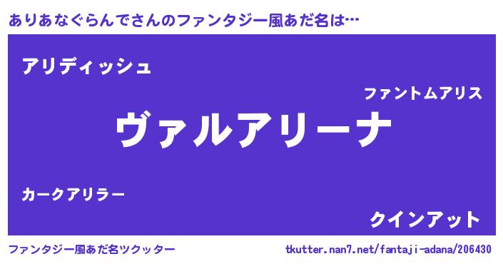 | 男性向けラノベタイトル風あだ名 | 『魔弾の王とありあなぐらんで』 |