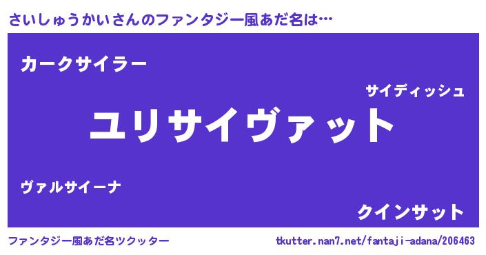 | 男性向けラノベタイトル風あだ名 | 『サイシュウカイスレイヤー』 |