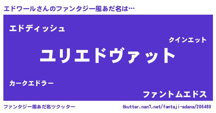 | 男性向けラノベタイトル風あだ名 | 『エドワール~年齢イコール彼女いない歴の魔法使い~』 |