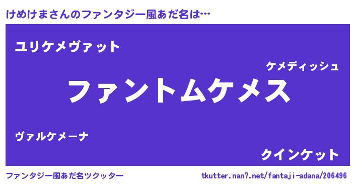| ヘコむあだ名 | 『けめぷりん』『けめけま(遠い目)』 |