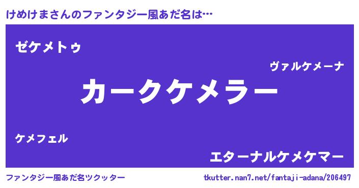 | 意味不明あだ名 | 『自称けめけま』『けめけまフォーエバー』 |