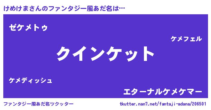 | ヒーロー風カッコイイあだ名 | 『慈愛の使者けめけま』『ネオケメケマ』 |