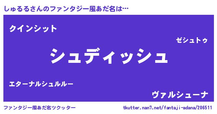 | 女子向けラノベタイトル風あだ名 | 『しゅるるの契約王妃』 |