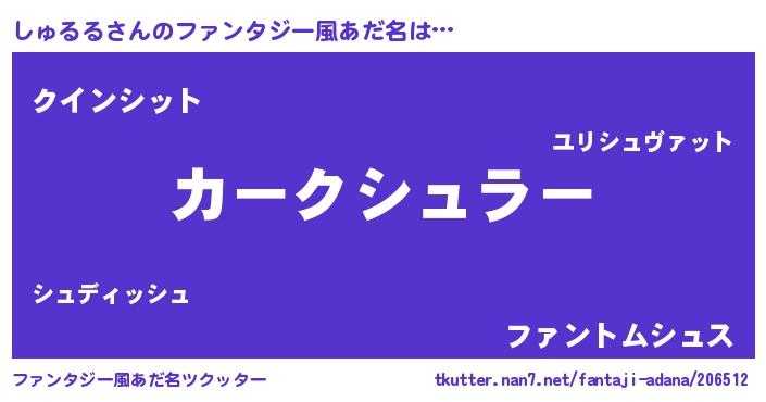 | ヒーロー風カッコイイあだ名 | 『慈愛の使者しゅるる』『魔戒騎士シュ』 |