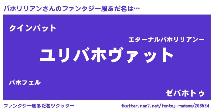 | 男性向けラノベタイトル風あだ名 | 『転生したらバホリリアンだった件』 |