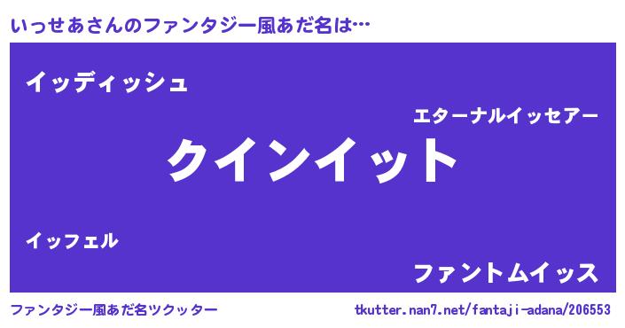 | 欧米人風あだ名 | 『アンジェラ・いっせあ』 |