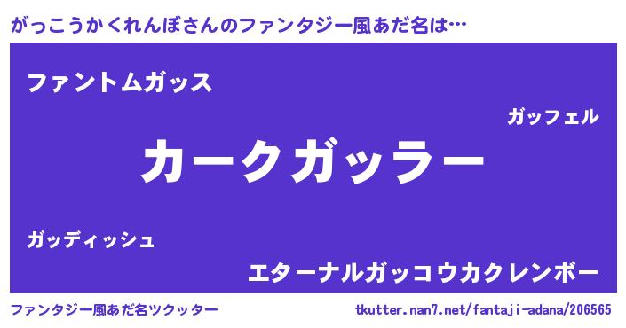| 自動車の名前っぽいあだ名 | 『フェガーッ』『ガント』『ガスラー』 |
