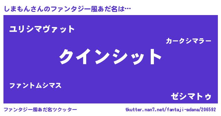 | ヒーロー風カッコイイあだ名 | 『天空の使者しまもん』『炎刃騎士シマ』 |